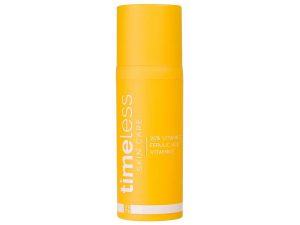 Серумът за лице Timeless Skin Care vitamin C е комбиниран с витамин (Е), който е един от най-добрите антиоксиданти. Той премахва слънчевите петна и другите несъвършенства (напр. петната от акне). Феруловата киселина участва активно за самовъзстановяването на кожата и – както някои от другите споменати съставки – е мощен антиоксидант. Този продукт е с лека и немазна формула, която се харесва на всички типове кожа. Тя не запушва порите на кожата и може да се използва като основа за грим.